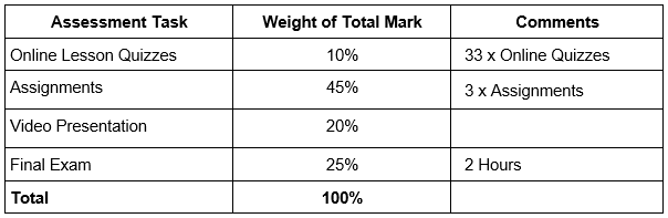 Students are required to complete all mandated assessment tasks in order to be granted the Diploma. To be awarded the diploma qualification, an overall course mark of 50% must be achieved.