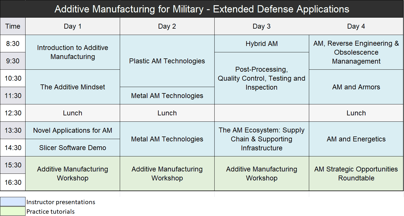 This unique 4-day course delivers the practical insights and experiences required to make informed, high-impact decisions about the adoption and integration of AM technologies within Defense contexts.